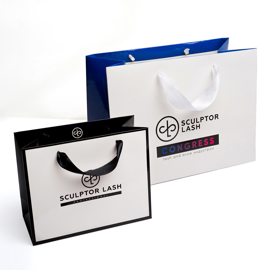 Друк пакетів на високоякісному фінському картоні 210г/м2, + глянсова / матова ламінація, друк повнокольоровий, картонні підсилювачі дна і ручок, мотузкові ручки обраного Вами кольору (стрічки +1 грн/шт за одиницю виробу).